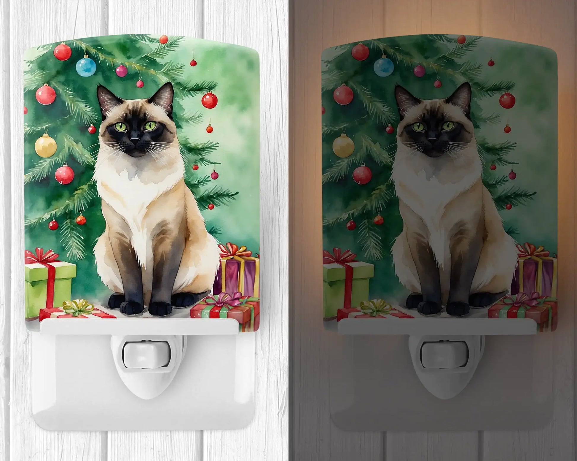 Birman Cat By the Christmas Tree Ceramic Night Light